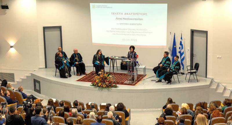 Σε Επίτιμη Διδάκτορα του Τμήματος Νηπιαγωγών της Σχολής Κοινωνικών και Ανθρωπιστικών Επιστημών του Πανεπιστημίου Δυτικής Μακεδονίας (ΠΔΜ) για την πολύτιμη προσφορά της στην κοινωνία μέσω του στιχουργικού και ποιητικού της έργου αναγορεύτηκε η κ. Λίνα Νικολακοπούλου, την Τετάρτη 01 Νοεμβρίου 2023.