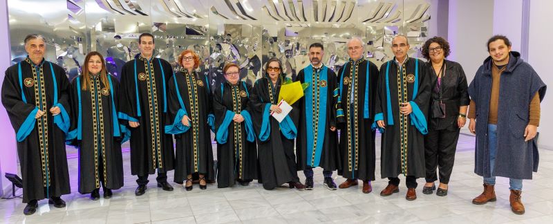 Κηρύσσοντας την έναρξη της δημόσιας πανηγυρικής συνεδρίασης και αναφερόμενος στο πλούσιο καλλιτεχνικό της έργο, ο Πρόεδρος του Παιδαγωγικού Τμήματος Νηπιαγωγών, Καθηγητής κ. Κωνσταντίνος Ντίνας σημείωσε ότι «οι τιμώντες τιμώνται εξίσου με τον τιμώμενο» και ανέγνωσε τα κείμενα του Ψηφίσματος του Τμήματος, της Αναγόρευσης σε Επίτιμο Διδάκτορα και του Διδακτορικού Διπλώματος.