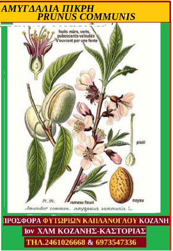 Είδος…………. Πικρή αμυγδαλιά Amygdalus communis V. amaris. ή prunus communis V. amaris