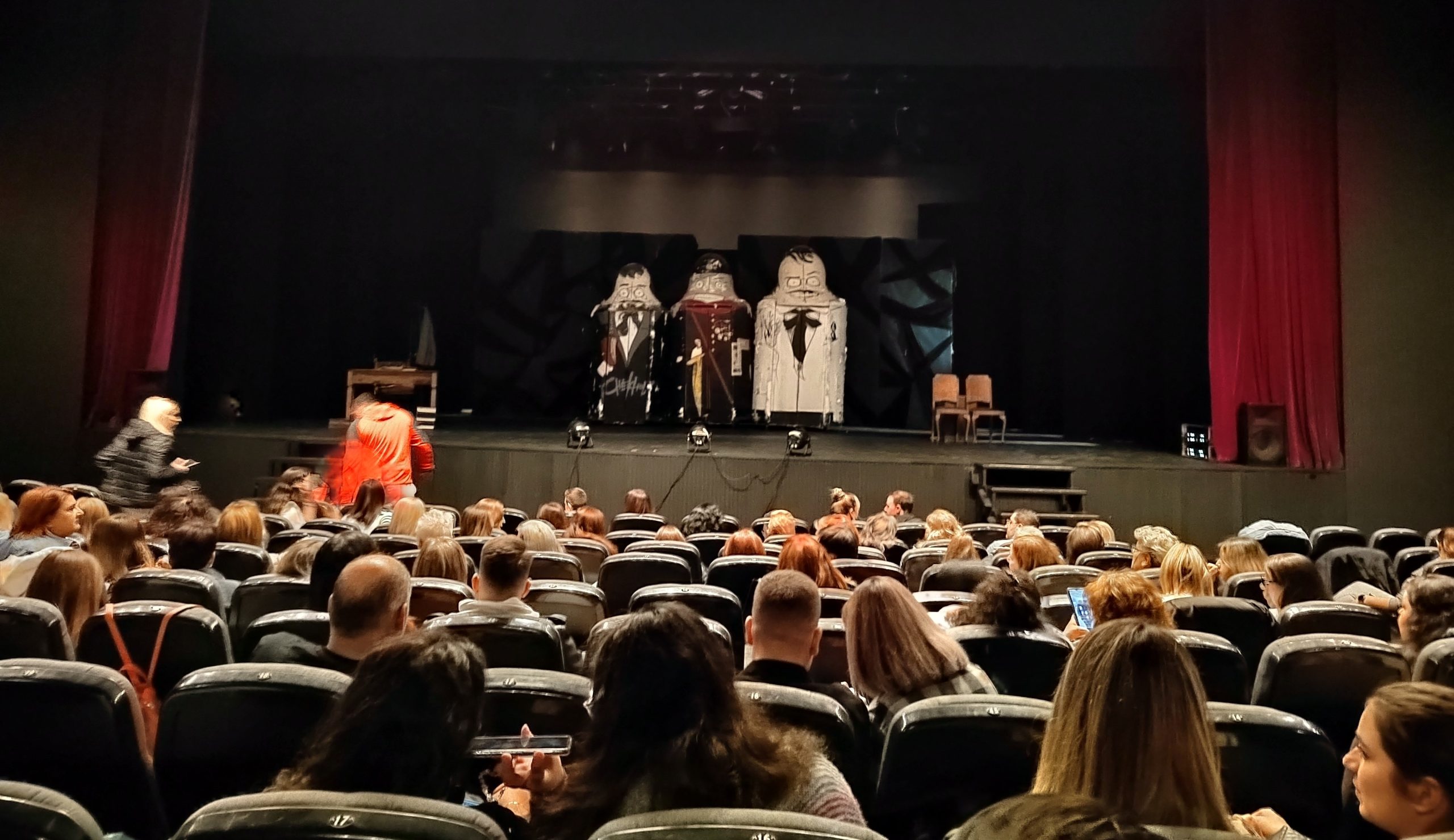 Ο κόσμος συγκεντρώθηκε από νωρίς στον προαύλιο χώρο και στο φουαγιέ του θεάτρου. Οι θεατές πήραν τις θέσεις τους , οι πόρτες έκλεισαν και με το τρίτο χτύπημα του κουδουνιού η παράσταση ξεκίνησε…