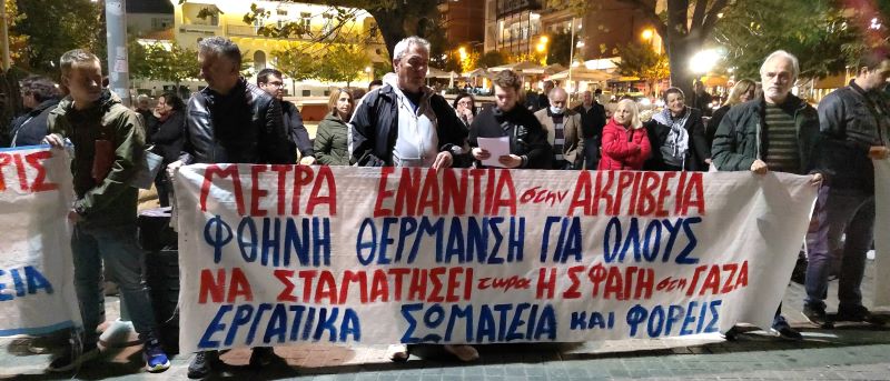 Κανένα σπίτι χωρίς θέρμανση – διπλασιασμός των επιδομάτων θέρμανσης STOP στην ακρίβεια. Αυξήσεις σε μισθούς και συντάξεις. Κατάργηση ειδικών φόρων κατανάλωσης και του ΦΠΑ σε πετρέλαιο θέρμανσης, ηλεκτρική ενέργεια και είδη πλατιάς κατανάλωσης. Κυβέρνηση, δήμος, περιφέρεια να εξασφαλίσουν τις αναγκαίες ποσότητες ξυλείας στους κατοίκους των χωριών σε χαμηλές τιμές. Δωρεάν καυσόξυλα σε ανέργους, χαμηλοσυνταξιούχους, οικογένειες με χαμηλό εισόδημα, ευπαθείς ομάδες. Ούτε μέρα χωρίς τηλεθέρμανση-εξασφάλιση απρόσκοπτης παροχής θερμικής ενέργειας από τον ΑΗΣ Αγίου Δημητρίου- καμία αύξηση της τιμής της τηλεθέρμανσης. Να μην πειραχτούν τα δικαιώματα των εργαζομένων της ΔΕΥΑΚ – κρατική επιχορήγηση για την κάλυψη των χρεών της. Να σταματήσει η σφαγή στην Παλαιστίνη. Καμία εμπλοκή της Ελλάδας