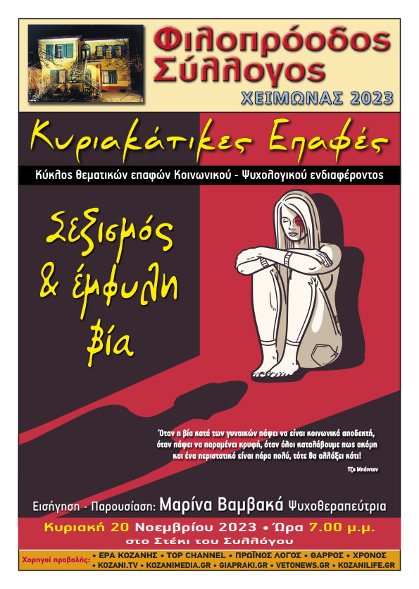 Φιλοπρόοδος Σύλλογος Κοζάνης: ‘Κυριακάτικες Επαφές’ του Νοεμβρίου με το επίκαιρο θέμα «Σεξισμός & έμφυλη βία»
