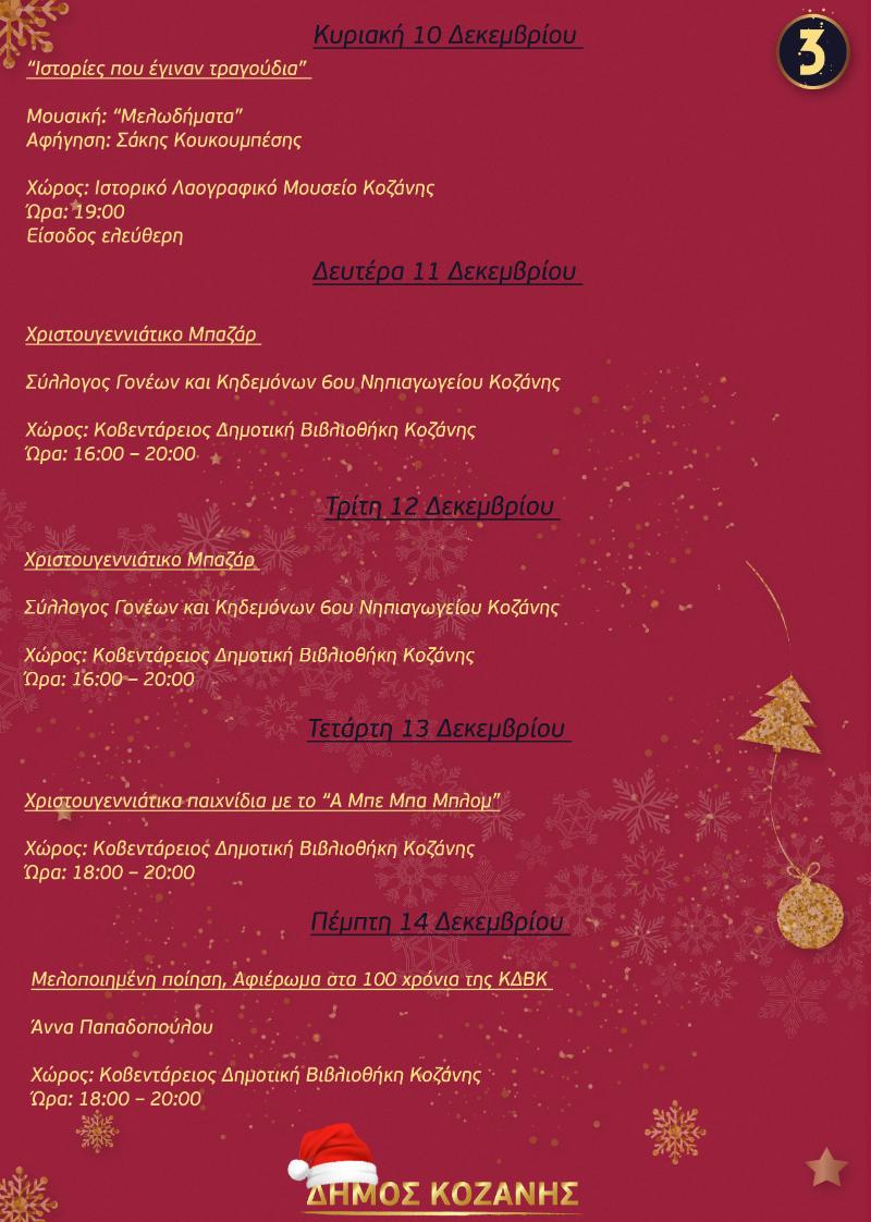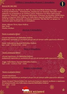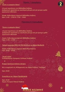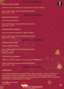 εορταστικών εκδηλώσεων που σχεδίασαν και οργάνωσαν ο ΟΑΠΝ, το ΔΗΠΕΘΕ και η Κοβεντάρειος Δημοτική Βιβλιοθήκη για τα Χριστούγεννα. Πλήθος εκδηλώσεων,