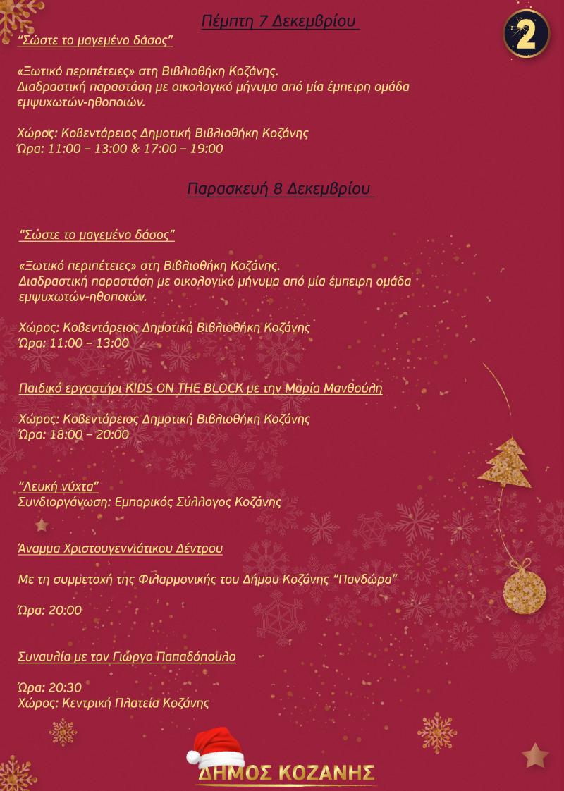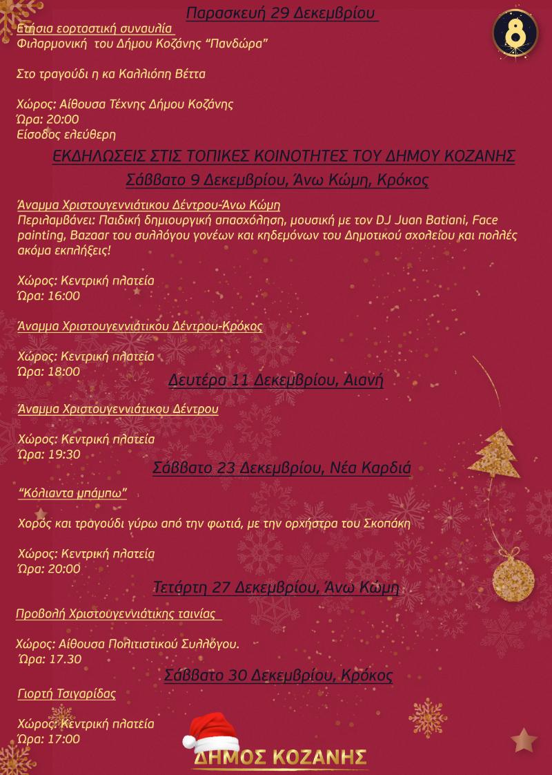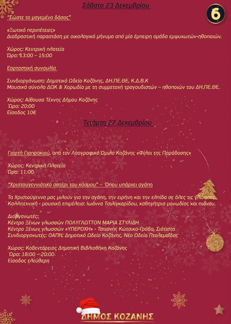 Το ΔΗ.ΠΕ.ΘΕ, το Δημοτικό Ωδείο, η Βιβλιοθήκη, το Εικαστικό Εργαστήρι του Δήμου, οι παιδικοί σταθμοί του Δήμου Κοζάνης, νηπιαγωγεία, ιδιωτικοί παιδικοί σταθμοί και κέντρα ξένων γλωσσών, συμμετέχουν στη «Χριστουγεννιάτικη Μαγεία στην Κοζάνη».