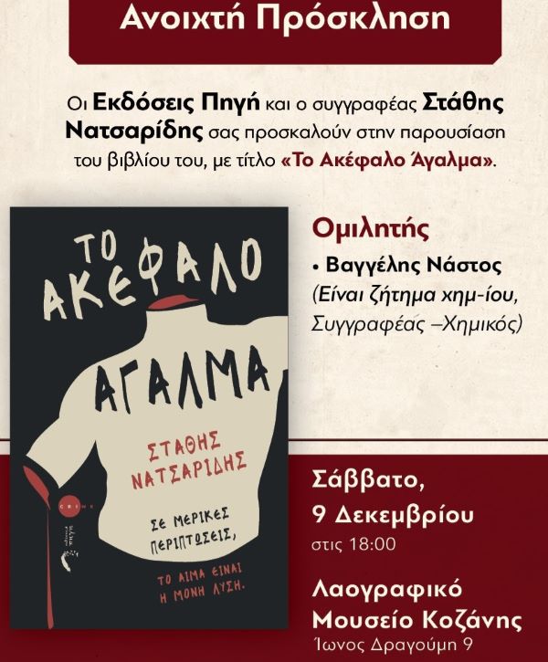 Παρουσίαση του βιβλίου ‘Το Ακέφαλο Άγαλμα’ του Στάθη Νατσαρίδη στο Λαογραφικό Μουσείο Κοζάνης