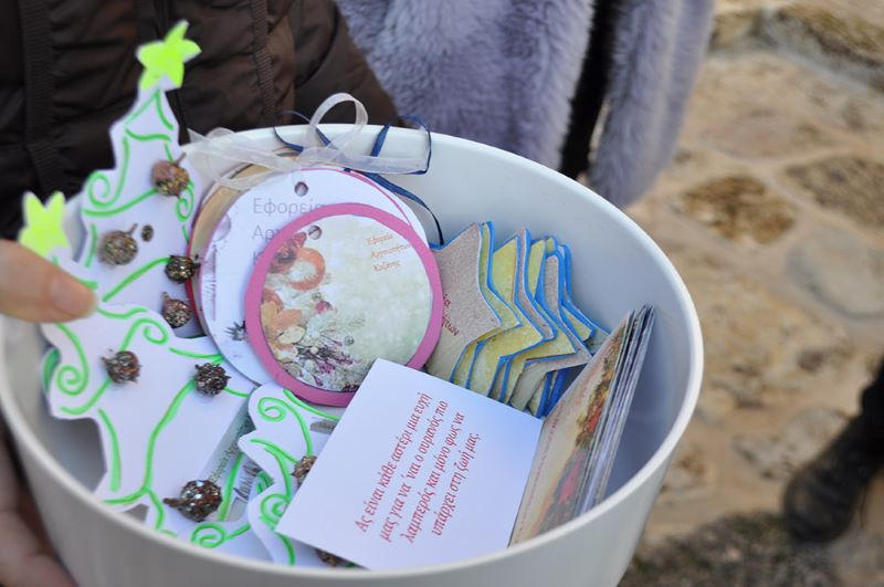Επίσης, για πρώτη φορά φέτος υλοποιήθηκε από την Εφορεία και την Προϊσταμένη του Τμήματος Συντήρησης Αρχαιοτήτων και Έργων Τέχνης Βικτωρία Χαραμπάτη, που είχε και την ιδέα, μία παράλληλη δράση αφιερωμένη στο Πνεύμα των Χριστουγέννων. Για όλους τους μαθητές, που ανήλθαν συνολικά στους 80, ετοιμάστηκαν κάρτες με διαφορετικές και μοναδικές ευχές, οι οποίες προσφέρθηκαν στα παιδιά με την παρότρυνση να τις χαρίσουν και τα ίδια σε ανθρώπους που αγαπούν και έτσι, από χέρι σε χέρι, να φτάσουν όσο γίνεται πιο μακριά, ταξιδεύοντας τις ευχές μας και χαρίζοντας χαμόγελο και ελπίδα.