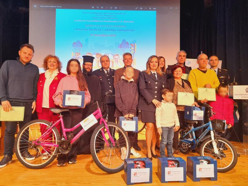 Στο τέλος της εκδήλωσης πραγματοποιήθηκε κλήρωση -12- ποδηλάτων, με αντίστοιχα κράνη, σε μαθητές, τα οποία προσέφεραν Φορείς, Σύλλογοι, Σωματεία και Επιχειρήσεις της περιοχής.