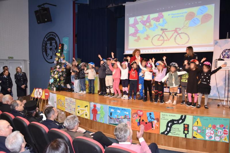 Στην κατάμεστη αίθουσα του Δήμου Φλώρινας πραγματοποιήθηκε την 07-12-2023 εκδήλωση, όπου μαθητές παρουσίασαν διάφορα έργα τους σχετικά με την οδική ασφάλεια