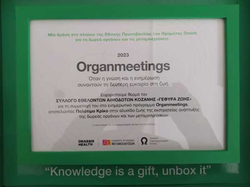O Σύλλογος Εθελοντών Αιμοδοτών Κοζάνης “ΓΕΦΥΡΑ ΖΩΗΣ” συμμετείχε σε πρόγραμμα του Ελληνικού Οργανισμού Μεταμοσχεύσεων (ΕΟΜ) που οργάνωσε το Onassis Health Media Office.