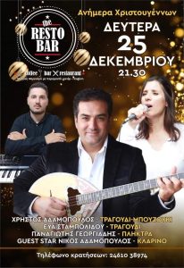 Το ‘RestoBar’ στην Μ. Μερκούρη & Κων/νου Καραμανλή, σας προσκαλεί όλους να γιορτάσετε μαζί τα Χριστούγεννα και τον ερχομό του νέου χρόνου!