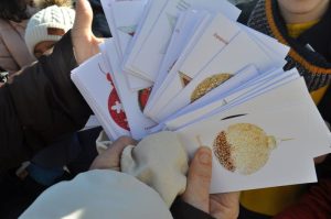 Ο Γιώργος εύχεται να χιονίσει φέτος ένα μέτρο, η Μαρία να πραγματοποιηθούν όλων των παιδιών τα όνειρα, ενώ ο Γιώργος να γίνει η καμήλα την Πρωτοχρονιά, την οποία ζωγράφισε κιόλας στην πίσω πλευρά! Πολλά είναι τα μηνύματα που εύχονται να μην υπάρχουν αδέσποτα ζώα στο δρόμο, ενώ συγκινητικά είναι κάποια που αναφέρονται σε βαθύτερα προβλήματα της κοινωνίας μας, όπως αυτό της Μαριαλένας, που εύχεται να εξαφανιστούν όλοι οι άστεγοι και τα αδέσποτα ζώα, αλλά και ενός άλλου μαθητή που εύχεται να έχουν όλοι οι άνθρωποι σπίτι!
