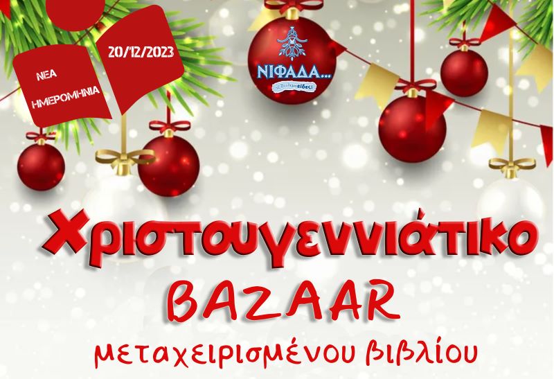 Αύριο Τετάρτη 20 Δεκεμβρίου 2023 πραγματοποιείται τελικά το Χριστουγεννιάτικο Παζάρι μεταχειρισμένων Βιβλίων του 3ου Γυμνασίου Πτολεμαΐδας στην Κεντρική Πλατεία της πόλης, που ήταν προγραμματισμένο για την περασμένη Παρασκευή και είχε αναβληθεί λόγω των καιρικών συνθηκών που επικράτησαν την ημέρα εκείνη.
