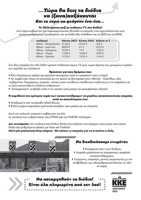 Βόιο 23/12/2023 Εξόρμηση των οργανώσεων του ΚΚΕ στα διόδια Σιάτιστας 0 Μαζική εξόρμηση στα διόδια στη Σιάτιστα ενάντια στις αυξήσεις πραγματοποιούν οι οργανώσεις Σιάτιστας και Κοζάνης του ΚΚΕ. Απαιτούν κατάργηση όλων των διοδίων, σύγχρονους και ασφαλής αυτοκινητόδρομους.