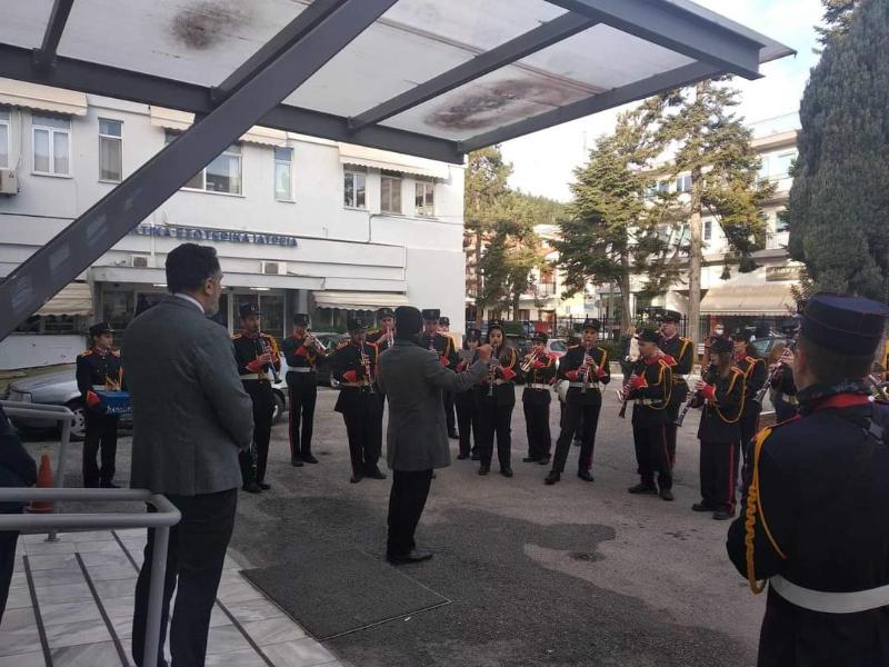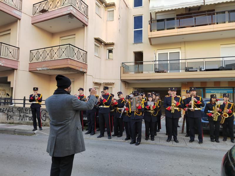 Τα κάλαντα έπαιξαν στο Γ. Ν.” Μαμάτσειο”, στο Δημαρχείο, στο Γηροκομείο, στο σπίτι του επί χρόνια Αρχιμουσικού της, Πάρι Καραχάλιου, στην πλατεία και σε γειτονιές της πόλης.