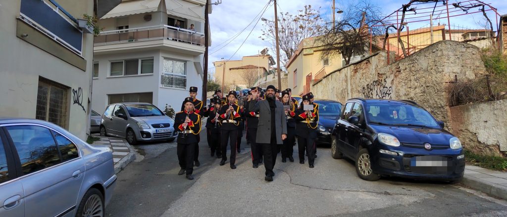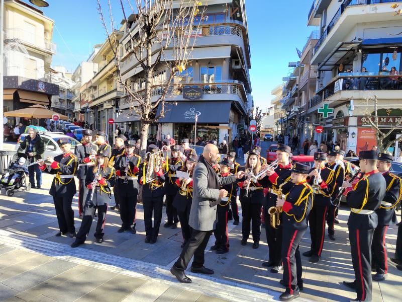 Οι μουσικοί της μπάντας με τις Χριστουγεννιάτικες μελωδίες τους έδωσαν τον ρυθμό που απαιτεί η μέρα, ντύνοντας με το χαρακτηριστικό ηχόχρωμα την εορταστική ατμόσφαιρα και μοιράζοντας χαμόγελα στον κόσμο.
