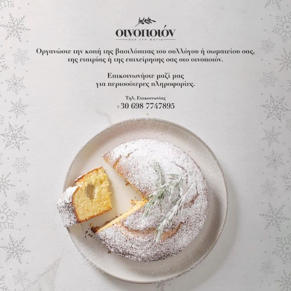 ΟΙΝΟΠΟΙΟΝ: Οργανώστε την κοπή της βασιλόπιτας και περάστε μια αξέχαστη βραδιά μαζί μας!