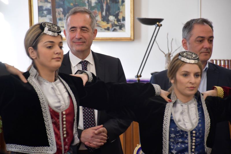 Κάλαντα των Θεοφανείων από τον Ποντιακό Σύλλογο Ακρινής Κοζάνης άκουσε στο Διοικητήριο ο Υφυπουργός Εσωτερικών, αρμόδιος για θέματα Μακεδονίας και Θράκης, Στάθης Κωνσταντινίδης.
