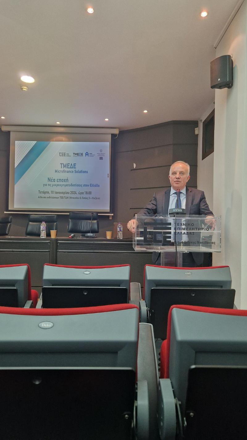 Ενημερωτική Εκδήλωση πραγματοποιήθηκε την Τετάρτη 10 Ιανουαρίου στην αίθουσα εκδηλώσεων του Τμήματος Δυτικής Μακεδονίας του ΤΕΕ (Μπουσίου & Εστίας 3), στην Κοζάνη, με θέμα «ΤΜΕΔΕ Microfinance Solutions – Νέα εποχή για τις μικροχρηματοδοτήσεις στην Ελλάδα».
