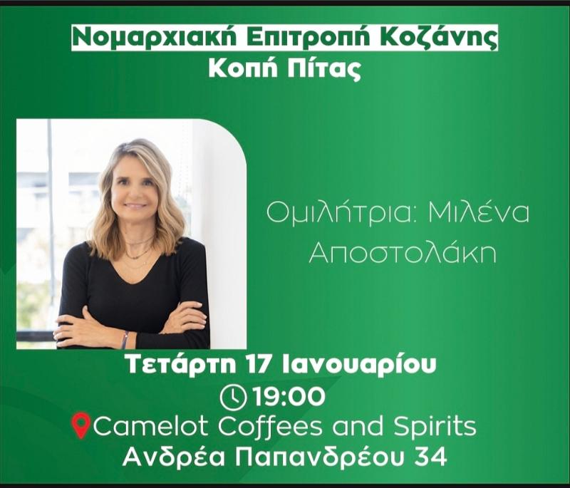 Κοζάνη 12/01/2024 Με ομιλήτρια τη Μιλένα Αποστολάκη η κοπή πίτας του ΠΑΣΟΚ – Κινήματος Αλλαγής Κοζάνης, στο “Camelot Coffees & Spirits” 0 Η Νομαρχιακή Επιτροπή του ΠΑΣΟΚ – Κινήματος Αλλαγής Κοζάνης, σας προσκαλεί στην κοπή πίτας, την Τετάρτη 17 Ιανουαρίου 2024 και ώρα 19:00 στην καφετέρια Camelot. Κεντρική ομιλήτρια θα είναι η Βουλευτής Μιλένα Αποστολάκη.