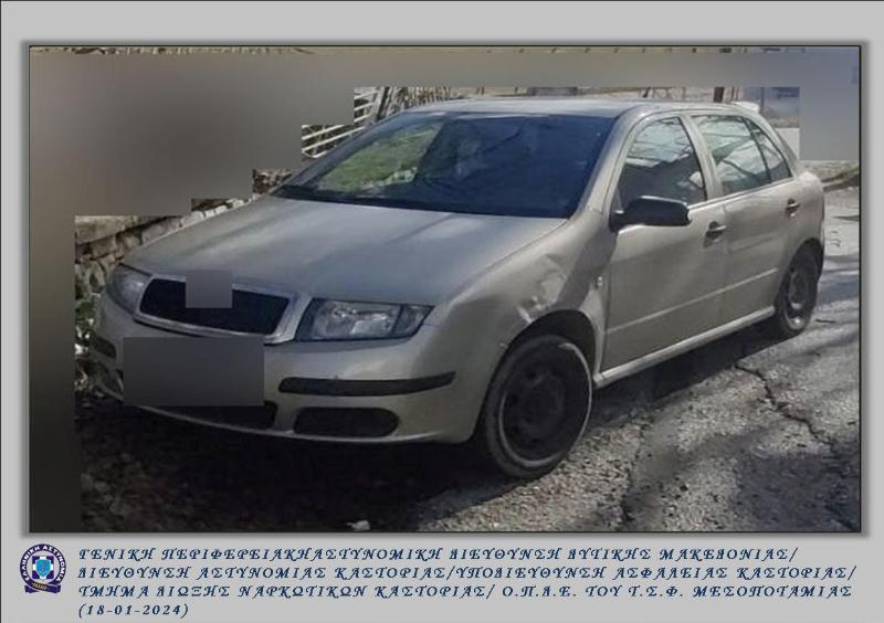 Συνελήφθη σήμερα (18-01-2024) τις πρώτες πρωινές ώρες σε περιοχή της Καστοριάς, από αστυνομικούς του Τμήματος Δίωξης Ναρκωτικών της Υποδιεύθυνσης Ασφάλειας Καστοριάς και της Ομάδας Πάταξης Διασυνοριακού Εγκλήματος (Ο.Π.Δ.Ε.) του Τμήματος Συνοριακής Φύλαξης Μεσοποταμίας, 58χρονος αλλοδαπός, για παράνομη μεταφορά -2- αλλοδαπών.