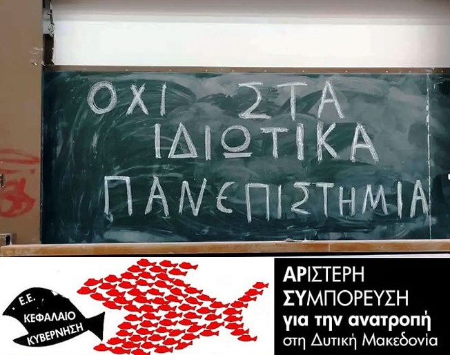 Η κυβέρνηση της Ν.Δ. εξήγγειλε ότι θα καταθέσει νομοσχέδιο για την ίδρυση ιδιωτικών «Πανεπιστημίων», προκαλώντας μαζικές αντιδράσεις των σπουδαστών, μαθητών και εκπαιδευτικών που αντιλαμβάνονται ότι φαλκιδεύεται ακόμα περισσότερο το δικαίωμα πρόσβασης σε καθολική δημόσια, δωρεάν, ποιοτική ανώτατη εκπαίδευση, σε μια παιδεία χωρίς εξεταστικούς φραγμούς και ταξικά εμπόδια.