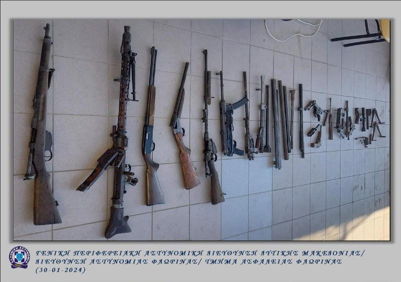 • -10- όπλα, εκ των οποίων -3- πολεμικά τυφέκια, -1- πολυβόλο, -1- υποπολυβόλο, -1- κυνηγετικό όπλο, -1- πιστόλι, και -3- αυτοσχέδια όπλα,