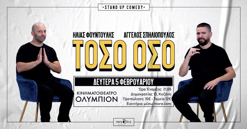 ‘ΤΟΣΟ ΟΣΟ’: Ο Ηλίας Φουντούλης και ο Άγγελος Σπηλιόπουλος στις 5/2 στο Κινηματοθέατρο ‘Ολύμπιον’ στην Κοζάνη