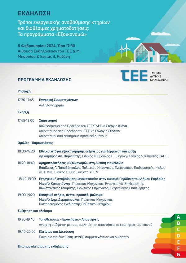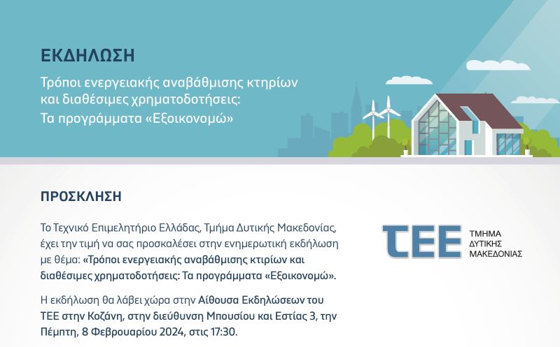 Το Τεχνικό Επιμελητήριο Ελλάδας, Τμήμα Δυτικής Μακεδονίας, έχει την τιμή να σας προσκαλέσει στην ενημερωτική εκδήλωση με θέμα: