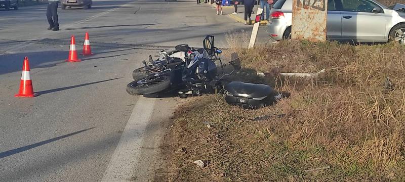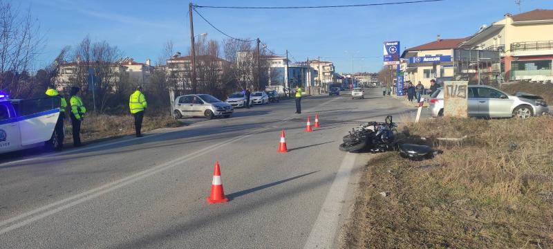 Από την σύγκρουση των δύο οχημάτων προέκυψε ο τραυματισμός του οδηγού της μηχανής , καθώς και υλικές ζημιές στα δύο οχήματα .