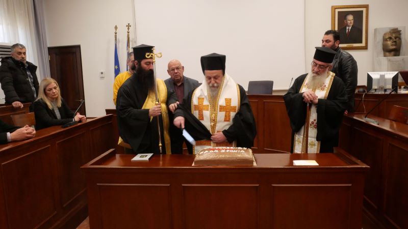 Την Βασιλόπιτα, ευλόγησε ο Σεβασμιώτατος Μητροπολίτης Γρεβενών κκ. Δαβιδ, και κατόπιν ο Δήμαρχος Γρεβενών, Κυριάκος Ταταρίδης, απεύθυνε σύντομο χαιρετισμό