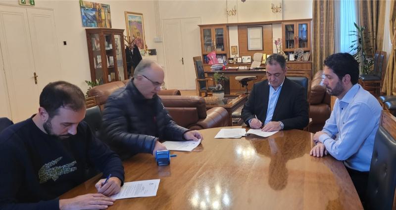 Υπεγράφη την Τρίτη 20 Φεβρουαρίου 2024, η σύμβαση του έργου «ΑΝΑΠΛΑΣΗ ΚΕΝΤΡΙΚΗΣ ΠΛΑΤΕΙΑΣ ΑΓΙΟΥ ΔΗΜΗΤΡΙΟΥ Δ.Ε. ΕΛΛΗΣΠΟΝΤΟΥ», προϋπολογισμού μελέτης 252.000€ με χρηματοδότηση από πιστώσεις του ΕΑΠ 2017-2021, μεταξύ του Δημάρχου Κοζάνης Γιάννη Κοκκαλιάρη και του εκπροσώπου της αναδόχου κατασκευάστριας εταιρείας «Κ/ΞΙΑ ΤΣΙΑΟΥΣΗΣ ΠΑΝΑΓΙΩΤΗΣ – ΧΡΗΣΤΟΣ ΤΣΙΑΟΥΣΗΣ & ΣΙΑ Ε.Ε. – ΠΑΤΣΙΛΙΑΣ ΠΑΡΑΣΚΕΥΑΣ», παρουσία του αρμόδιου Αντιδημάρχου Τεχνικών Έργων Κώστα Βόμβα.