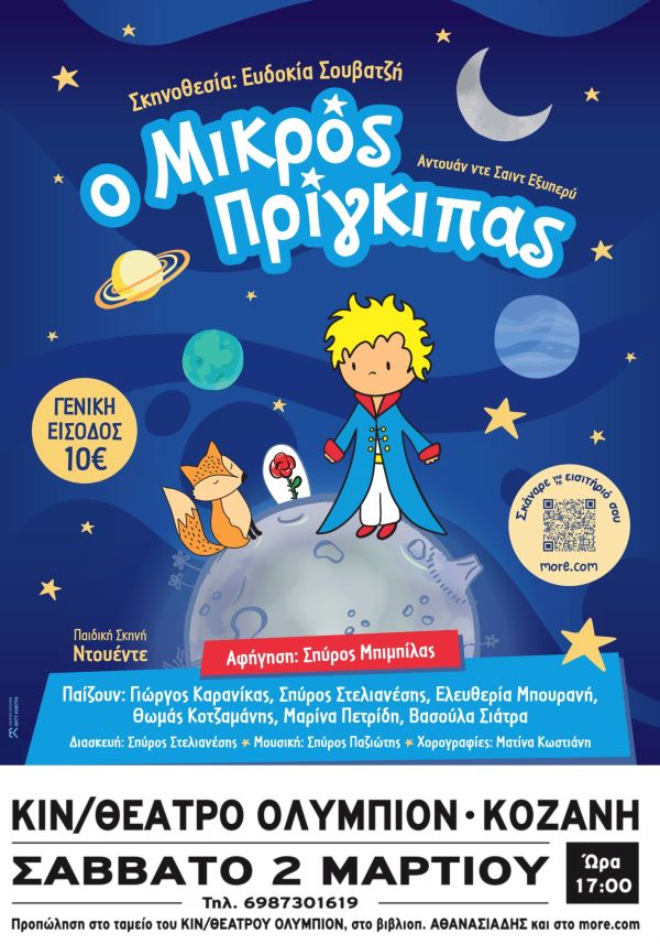 Το αλληγορικό παραμύθι του Αντουάν ντε Σαιντ-Εξυπερύ σε μια θεατρική εκδοχή για παιδιά, η οποία αναδεικνύει τις πανανθρώπινες αξίες της φιλίας, της αγάπης και της ανιδιοτέλειας. Ένα υπερθέαμα,γεμάτο τραγούδι,χορό και πολλά διδακτικά μηνύματα για τα παιδιά!