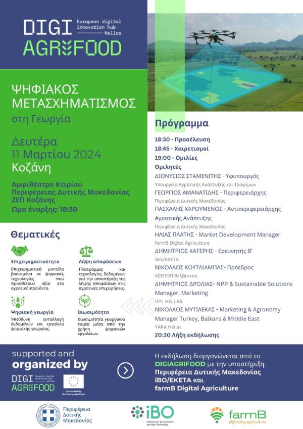 Η Εκδήλωση θα λάβει χώρα τη Δευτέρα 11 Μαρτίου στις 18:30 στην πόλη της Κοζάνης, στο αμφιθέατρο της Περιφέρειας Δυτικής Μακεδονίας στη ΖΕΠ Κοζάνης. Την εκδήλωση υποστηρίζουν η Περιφέρεια Δυτικής Μακεδονίας, το ΕΚΕΤΑ / iBO και η εταιρεία farmB.