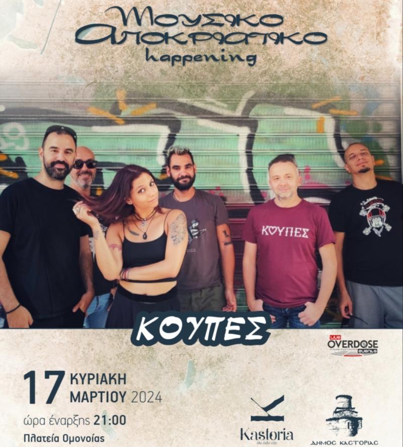 Οι «Κούπες» είναι μία εξαμελής μπάντα που ακροβατεί ανάμεσα στο ροκ και την παράδοση. Στα live τους εκτός από δικά τους τραγούδια, παρουσιάζουν και πασίγνωστες διασκευές, παιγμένες με έναν ιδιαίτερο μοναδικό τρόπο που ξεσηκώνει το ακροατήριο. Από τη μία το κλαρίνο και η γκάιντα να πρωταγωνιστούν και από την άλλη οι ηλεκτρικές κιθάρες, μαζί με το μπάσο και τα τύμπανα, παρασέρνουν το κοινό σε αυτή τη μοναδική ενέργεια που εκπέμπουν!