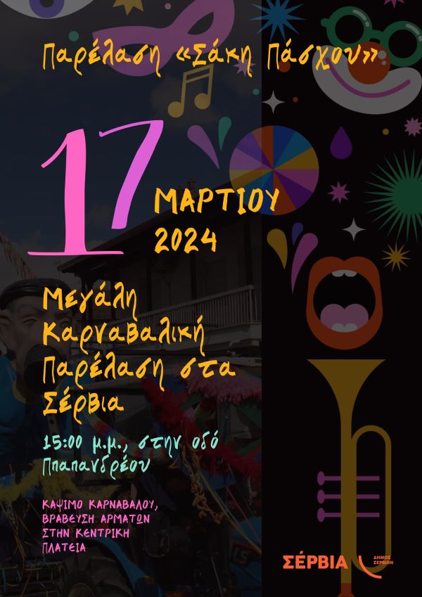 Σερβιώτικο Καρναβάλι 2024 – Μεγάλη Καρναβαλική Παρέλαση στα Σέρβια την Κυριακή 17 Μαρτίου 2024