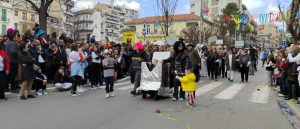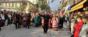 Επισκέπτες και ντόπιοι κατέκλυσαν από νωρίς το μεσημέρι έναν από τους κεντρικότερους δρόμους της πόλης, την οδό Παύλου Μελά, για να παρακολουθήσουν την ξακουστή παρέλαση της Κοζανίτικης Αποκριάς.