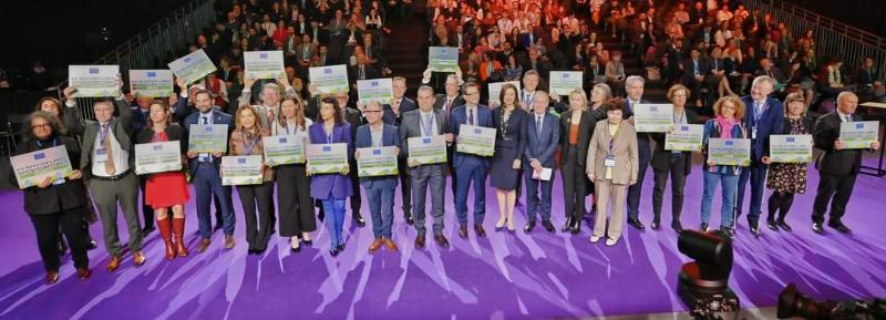 Είναι η στιγμή που ο Δήμαρχος Γιάννης Κοκκαλιάρης, λαμβάνει μαζί με τους υπόλοιπους εταίρους, σε ειδική εκδήλωση που πραγματοποιήθηκε πριν από λίγο στις Βρυξέλλες, την αναγνώριση της Κομισιόν για τις διαχρονικές προσπάθειες του Δήμου Κοζάνης, στην κατεύθυνση προστασίας του περιβάλλοντος, μέσα από την υιοθέτηση καθαρών ενεργειακών πολιτικών.