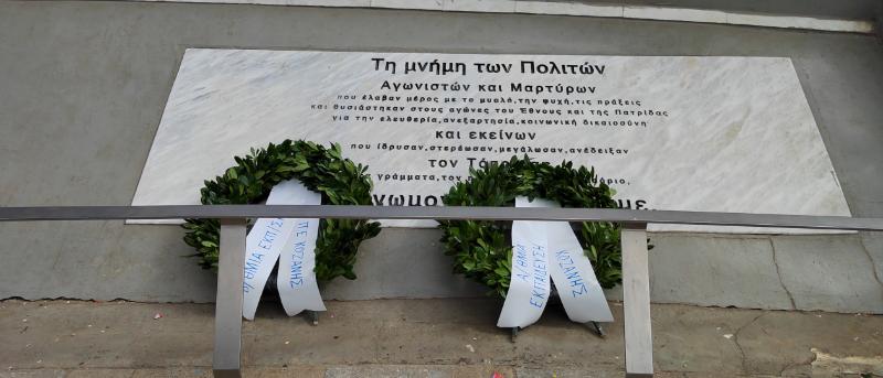 Σημαιοφόροι, παραστάτες και αντιπροσωπεία μαθητών απότισαν φόρο Τιμής στους ήρωες του 1821 με την καθιερωμένη κατάθεση στεφάνων.