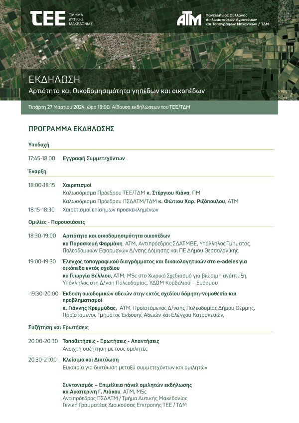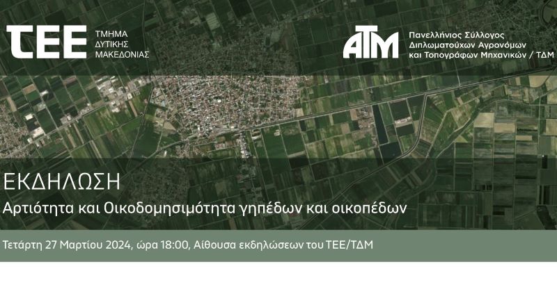 Το Τμήμα Δυτικής Μακεδονίας του ΤΕΕ, σε συνεργασία με τον Πανελλήνιο Σύλλογο Διπλωματούχων Αγρονόμων και Τοπογράφων Μηχανικών / ΤΔΜ,