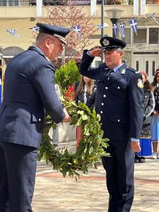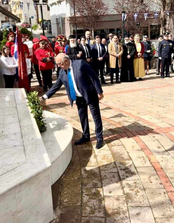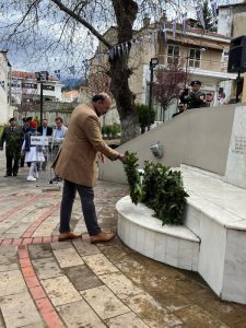 Στη συνέχεια έγινε η κατάθεση στεφάνων από τον εκπρόσωπο της Κυβέρνησης και τις αρχές του τόπου με τον πανηγυρικό της ημέρας να εκφωνείτε από την εκπαιδευτικό Αναστασία Μέτσιου.