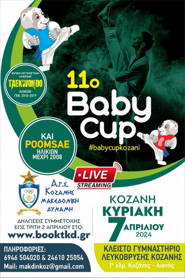 Φιλική αγωνιστική ημερίδα taekwondo με την επωνυμία ΄΄ 11ο Baby Cup 2024΄΄ διοργανώνει ο σύλλογος Μακεδονικής Δύναμης Κοζάνης.