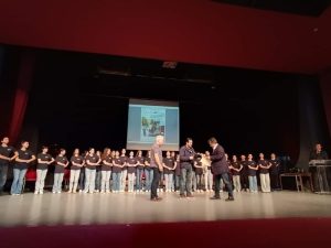 Η κατεύθυνση Χορού των τάξεων Α’, Β’ και Γ’ Γυμνασίου υπό την καθοδήγηση του υποδιευθυντή και υπεύθυνου παραδοσιακών χορών κ. Α. Παπαζήση παρουσίασαν παραδοσιακούς χορούς της περιοχής μας. Συγκεκριμένα χόρεψαν τον Λιβαδίτικο, τον Τσάμικο, τον Μάη της Βλάστης, τα Περιστέρια και το Έντεκα που στην κυριολεξία ενθουσίασαν τους θεατές.