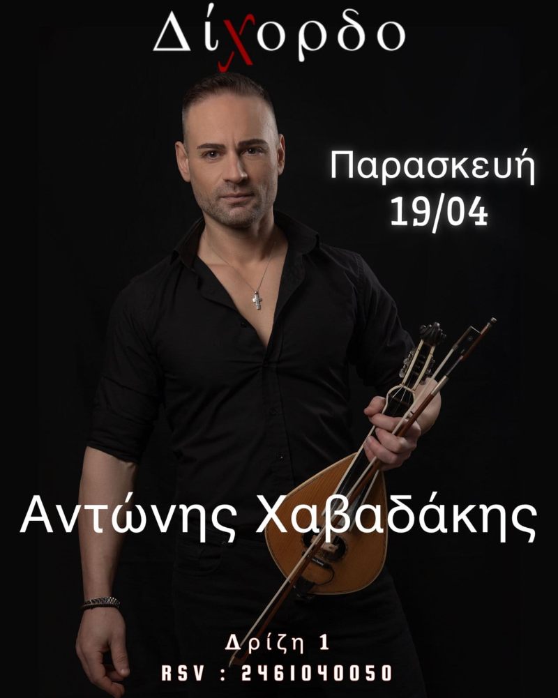 Ο ανεπανάληπτος Κρητικός, Αντώνης Χαβαδάκης, θα βρίσκεται για μια αξέχαστη βραδιά στο Δίχορδο, την Παρασκευή 19 Απριλίου .