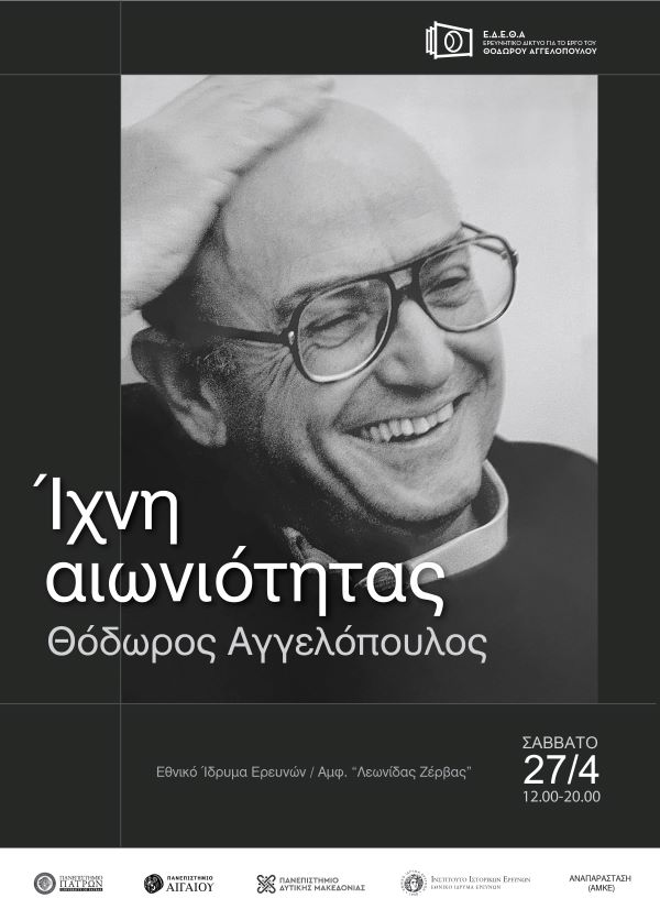 Στις 27 Απριλίου 1935 γεννιέται στην Αθήνα ο Θόδωρος Αγγελόπουλος. Δώδεκα χρόνια μετά τον θάνατο του μεγάλου σκηνοθέτη το νεοϊδρυθέν «Ερευνητικό Δίκτυο για το έργο του Θόδωρου Αγγελόπουλου» διοργανώνει την πρώτη του δημόσια εκδήλωση. Η ημερίδα με τίτλο Ίχνη αιωνιότητας: Θόδωρος Αγγελόπουλος θα πραγματοποιηθεί το Σάββατο 27 Απριλίου 2024, στο Αμφιθέατρο «Λεωνίδας Ζέρβας» του Εθνικού Ιδρύματος Ερευνών. Στόχος της συνάντησης είναι να διασταυρωθούν ερευνήτριες και ερευνητές που ασχολούνται με το έργο του Θόδωρου Αγγελόπουλου με τους ανθρώπους που συνεργάστηκαν μαζί του, καθώς και με τους φίλους και την οικογένειά του, σε μια παραγωγική διαδικασία που θα αναδείξει νέα ερωτήματα και προσεγγίσεις.