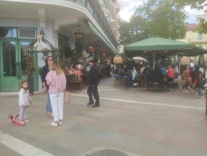 Η καλή για την εποχή θερμοκρασία συνετέλεσε στο να βγει ο κόσμος να πραγματοποιήσει τα πρώτα Πασχαλινά ψώνια και στη συνέχεια να απολαύσει την βόλτα του στα καταστήματα εστίασης.