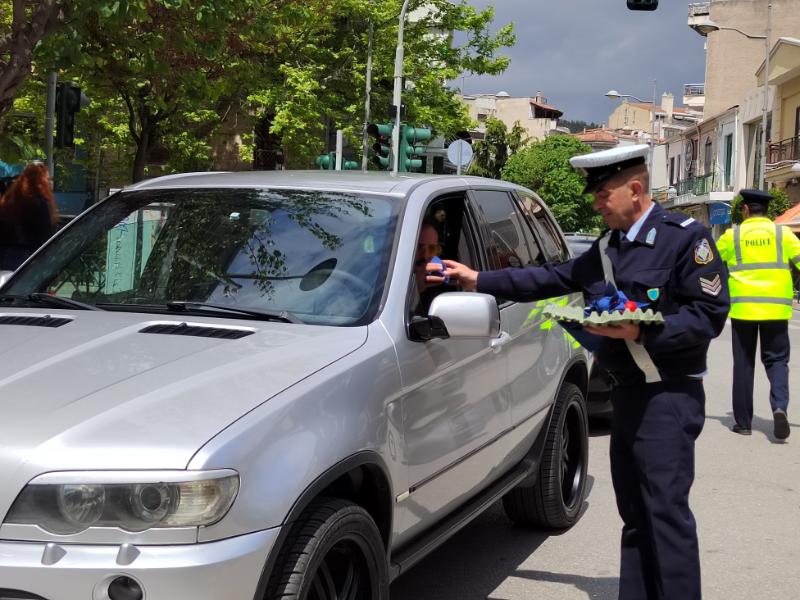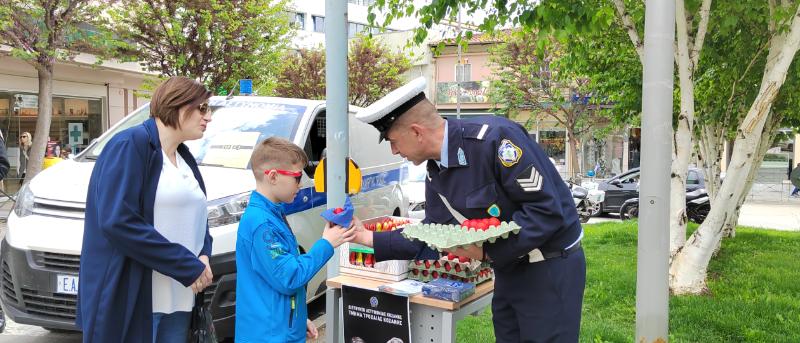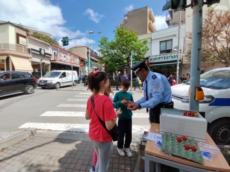 Πασχαλινά αυγά και ευχές μοίρασαν ο Διοικητής και το προσωπικό του Τμήματος Τροχαίας Κοζάνης σε διερχόμενους πεζούς και οδηγούς οχημάτων, το πρωί της Μεγάλης Πέμπτης 2 Μαΐου, σε κεντρικούς δρόμους της πόλης.