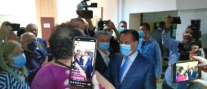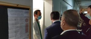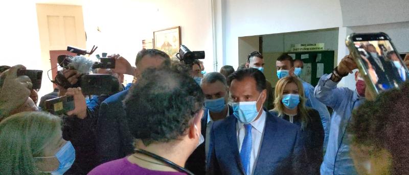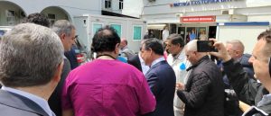 Κατά την επίσκεψη του στους εσωτερικούς χώρους του Νοσοκομείου συνομίλησε με τους εργαζόμενους και τους ασθενείς.