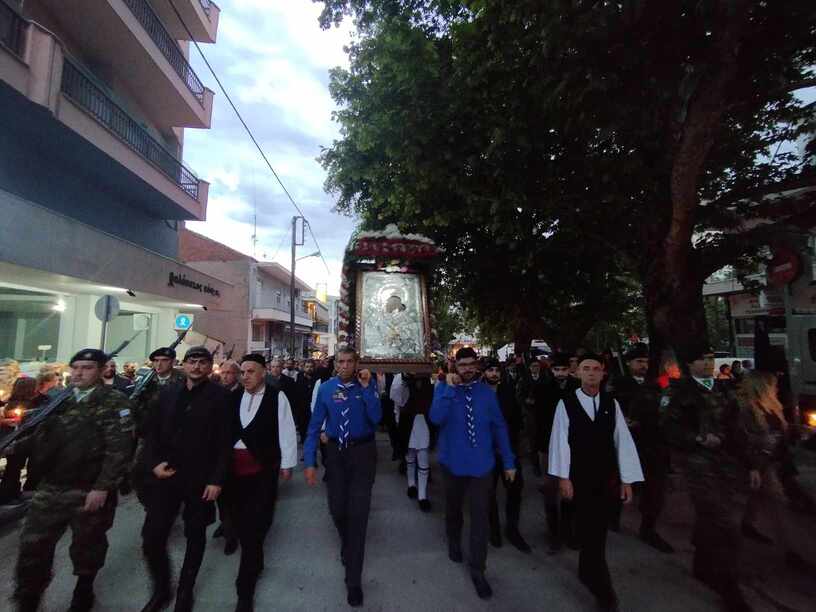Μέσα σε ένα χαρμόσυνο κλίμα που δημιουργήσαν οι συμμετέχοντες μουσικοί, η θαυματουργή εικόνα μεταφέρθηκε όπως είθισται από τον Ιερό Ναό των Αγίων Κωνσταντίνου & Ελένης, στον Ιερό Μητροπολιτικό Ναό του Αγίου Νικολάου, στο κέντρο της πόλης.