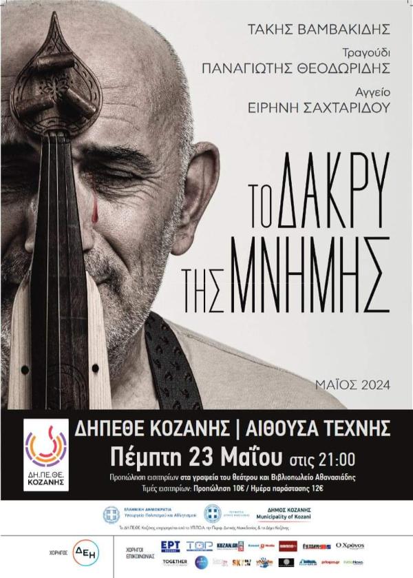 ΔΗ.ΠΕ.ΘΕ.Κοζάνης : «Το Δάκρυ…της ΜΝΗΜΗΣ» με τον Τάκη ΒαμβακίδηΚ οζάνη, «Αίθουσα Τέχνης» την Πέμπτη 23 Μαϊου ώρα 21:00