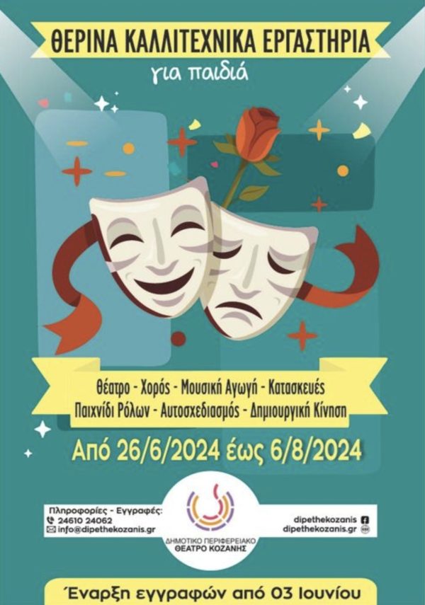 Τα Θερινά Καλλιτεχνικά Εργαστήρια του ΔΗ.ΠΕ.ΘΕ. θα λειτουργούν σε καθημερινή βάση, εκτός Σαββάτου και Κυριακής, κατά τις ώρες
